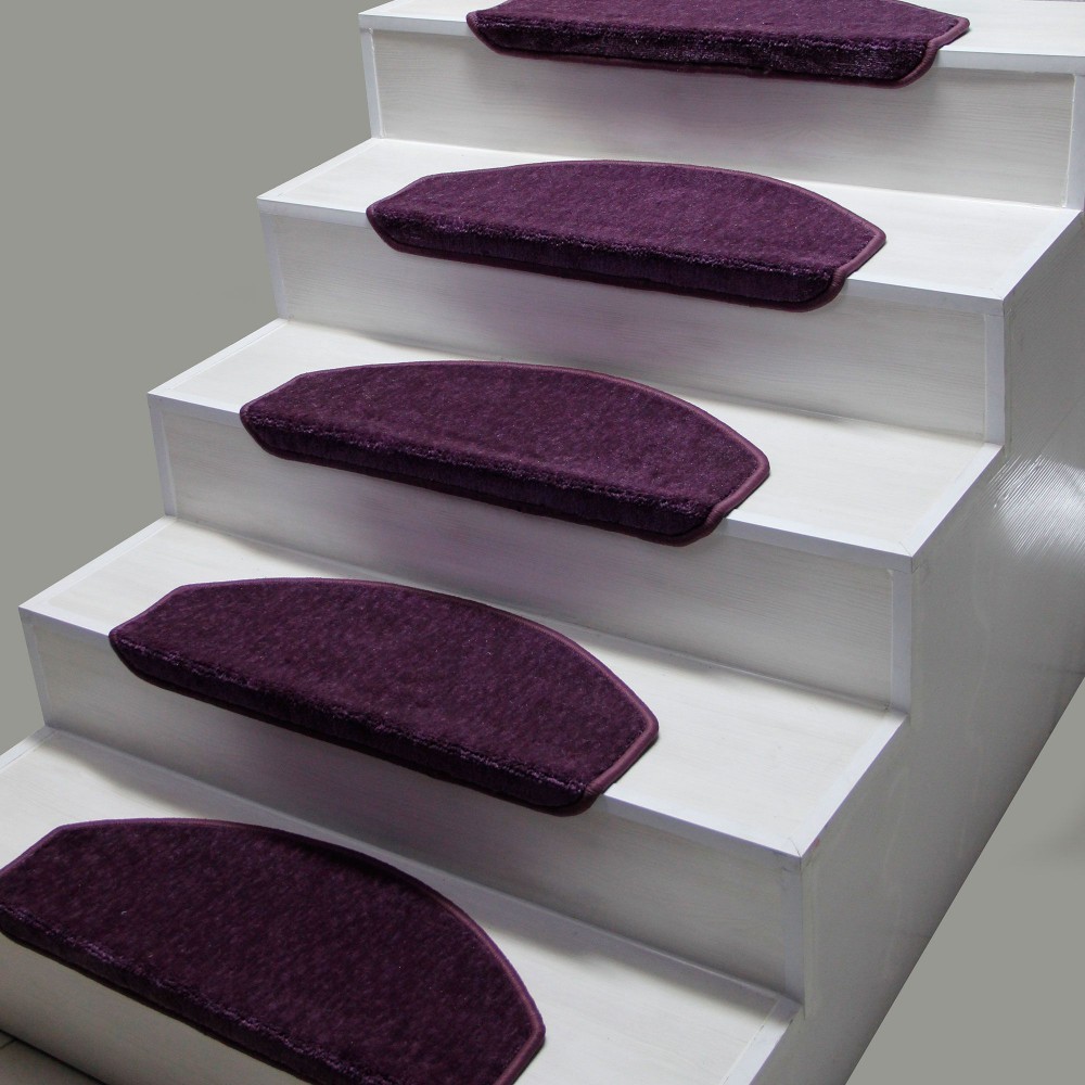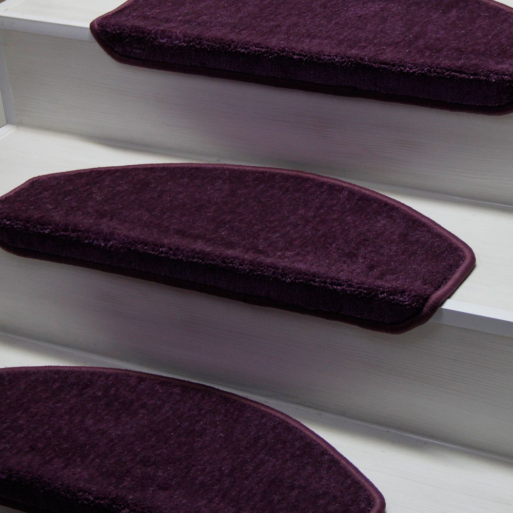 Mor Renk Tüylü Halıdan Oval Kesim Demonte Basamak Paspası