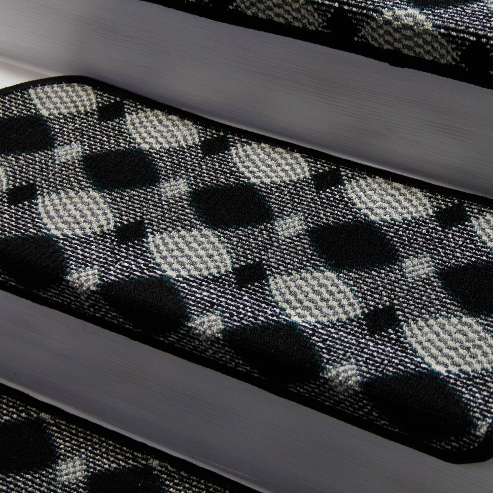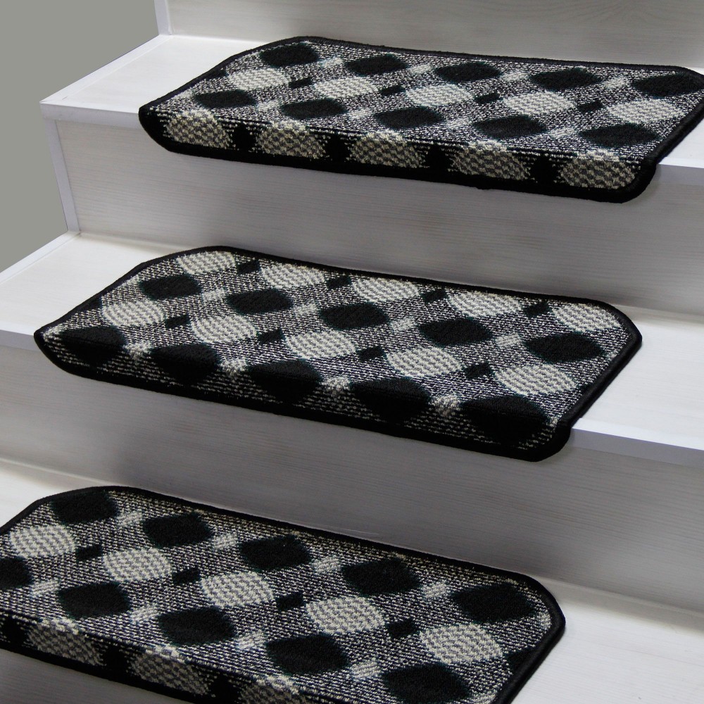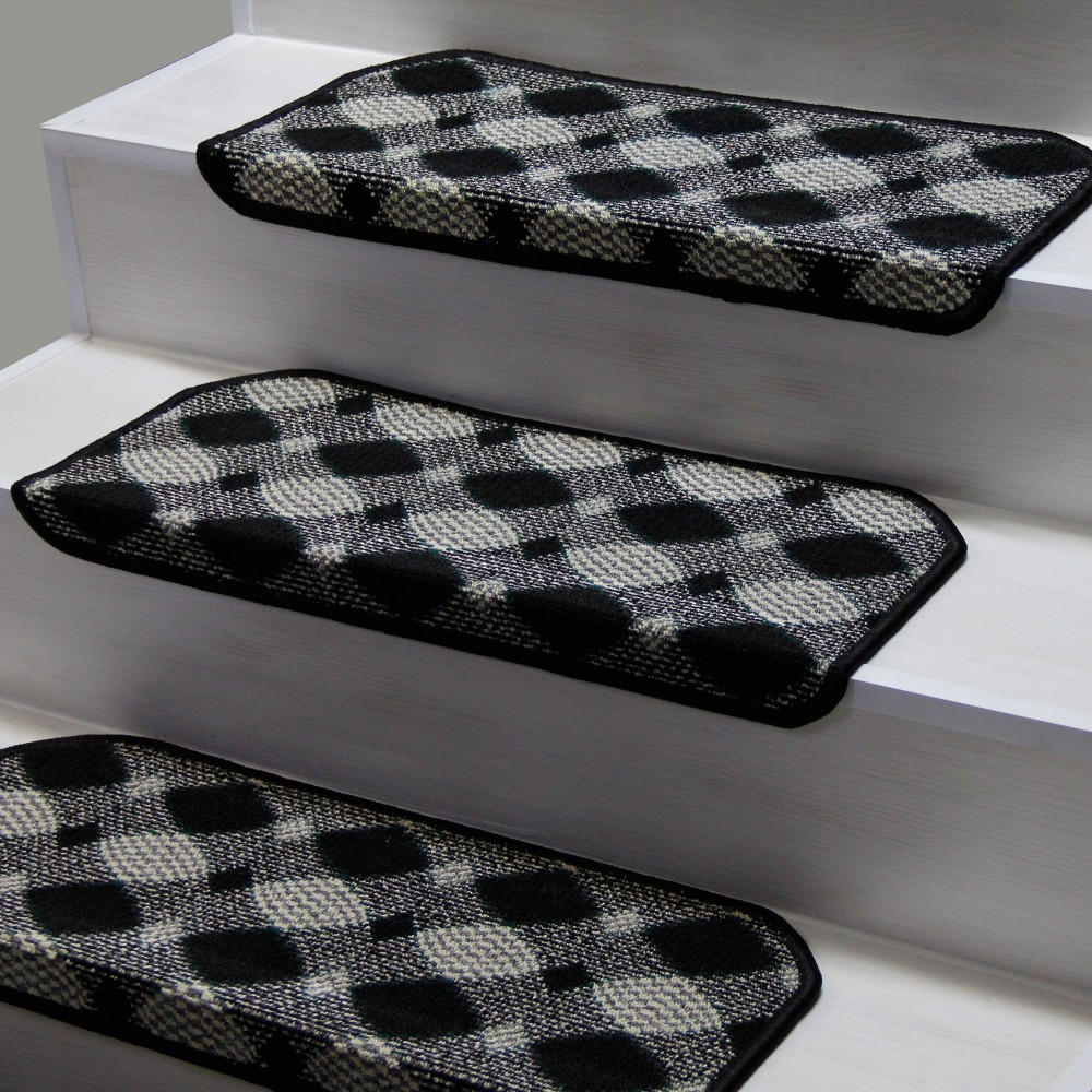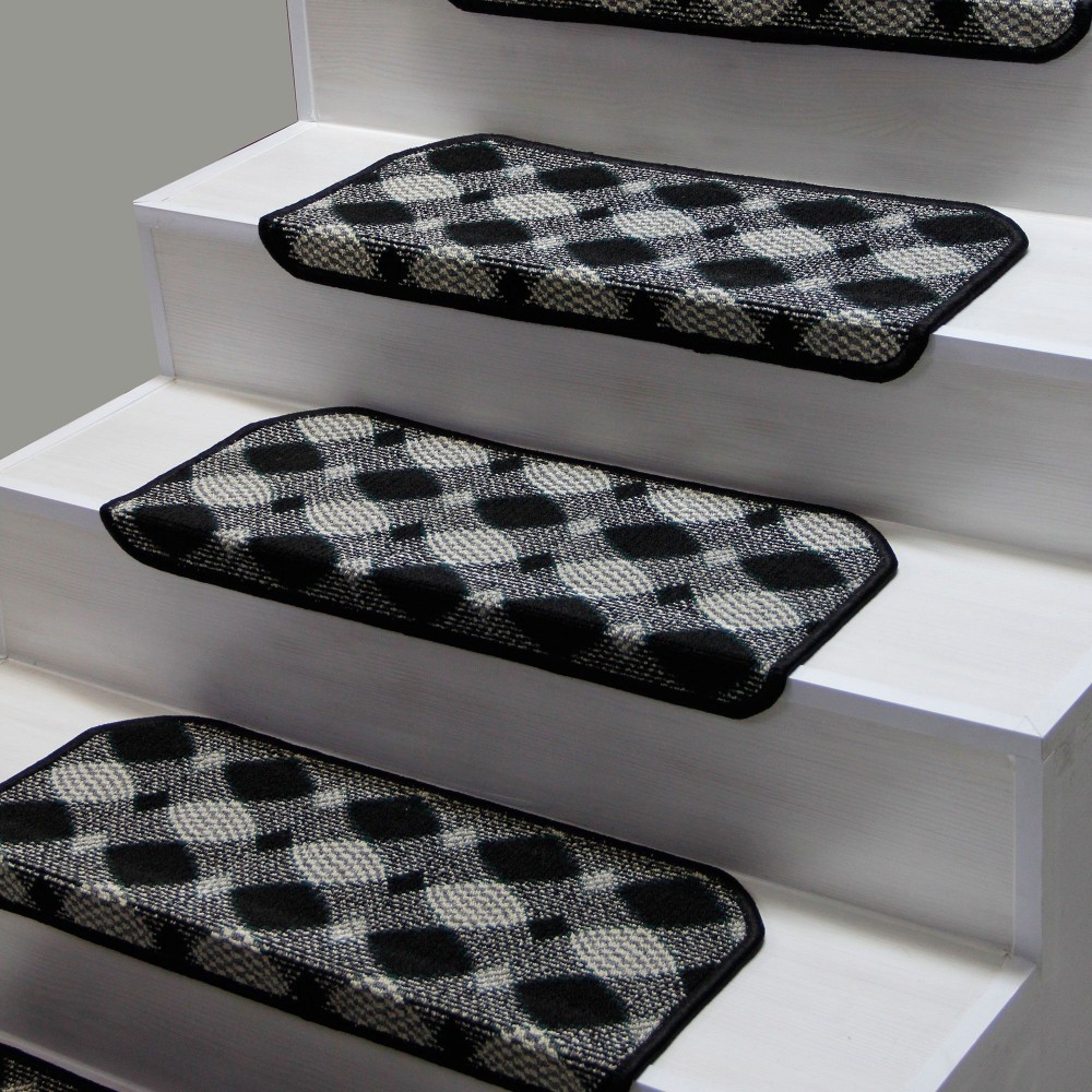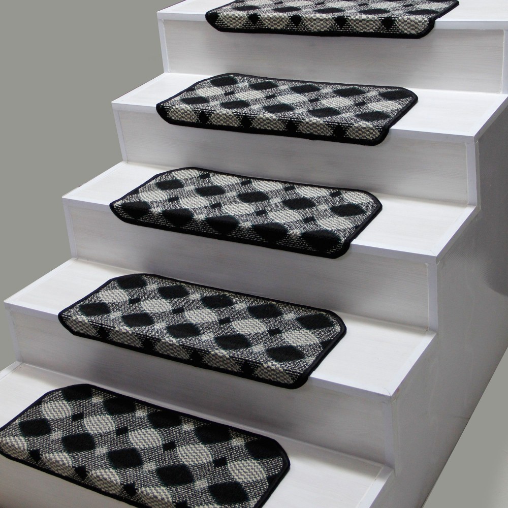 Siyah Renk Kare Desenli Model Bukle Halıdan Demonte Basamak Paspasi